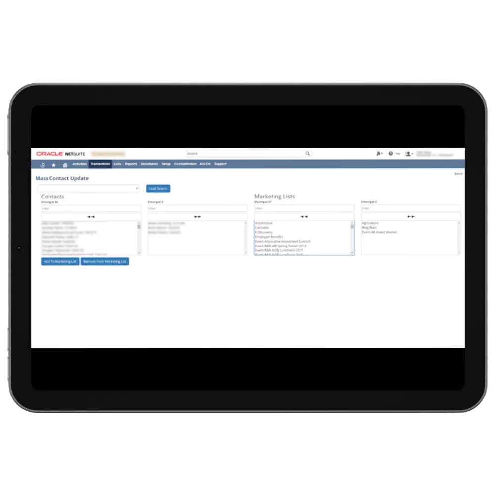 The client required a module to facilitate bulk assignment or removal of marketing lists from contacts, improving efficiency in contact management.